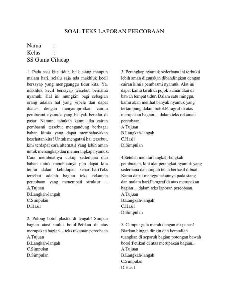 Berhubung teks rekaman percobaan ini tidak jauh berbeda dengan teks . Semoga kehadiran artikel ini dapat . Biasanya sih, teks rekaman percobaan ini dipakai dalam suatu percobaan, penelitian, karya ilmiah bahkan laporan praktikum. Umumnya digunakan untuk melakukan percobaan, karya ilmiah, pembuatan sesuatu, dan lainnya. Teks rekaman percobaan atau teks laporan percobaan merupakan tulisan yang berfungsi untuk.